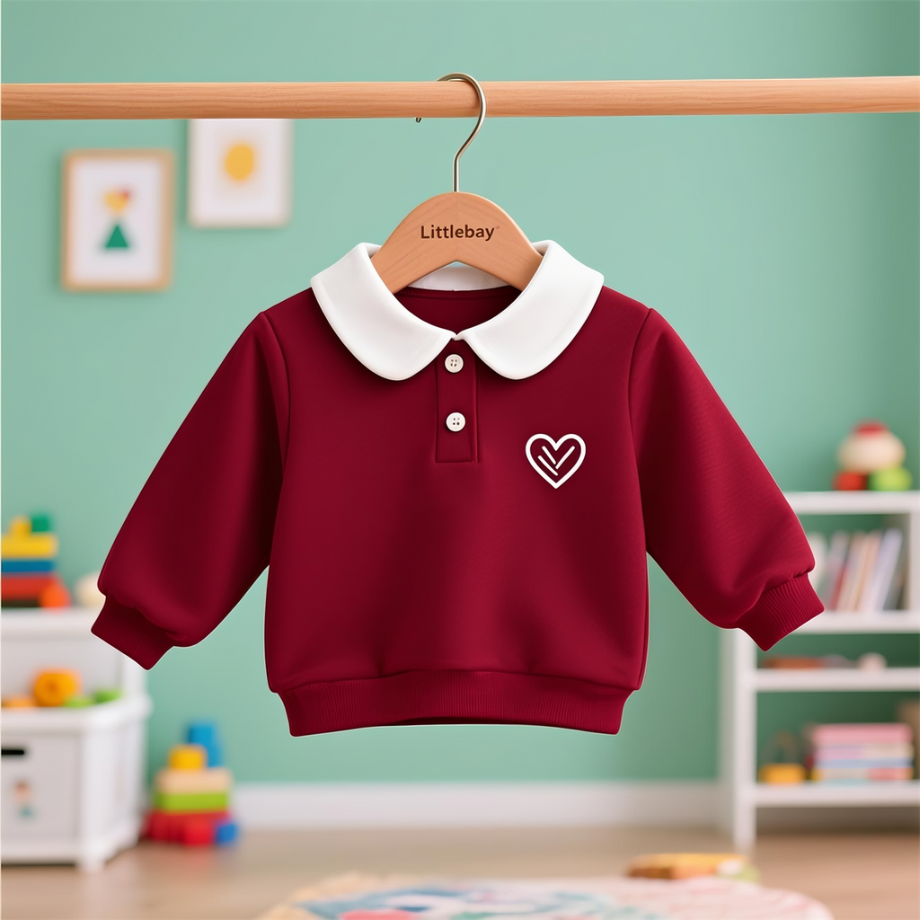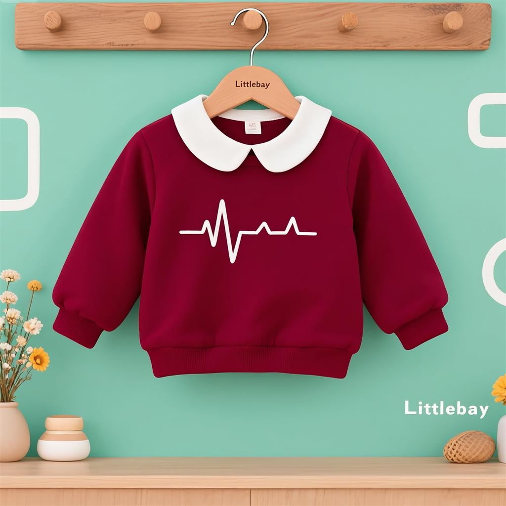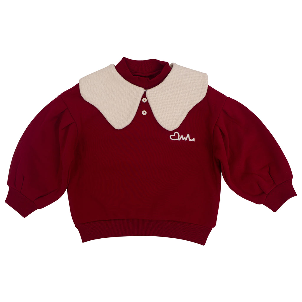 Heart - Printed Peter Pan Collar Girls' Burgundy Sweatshirt – Sweet & Stylish Top