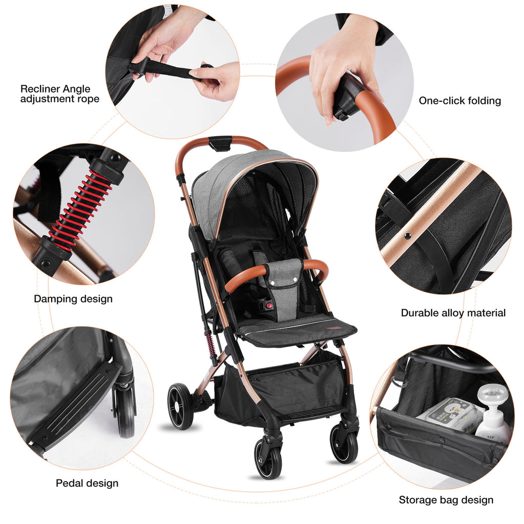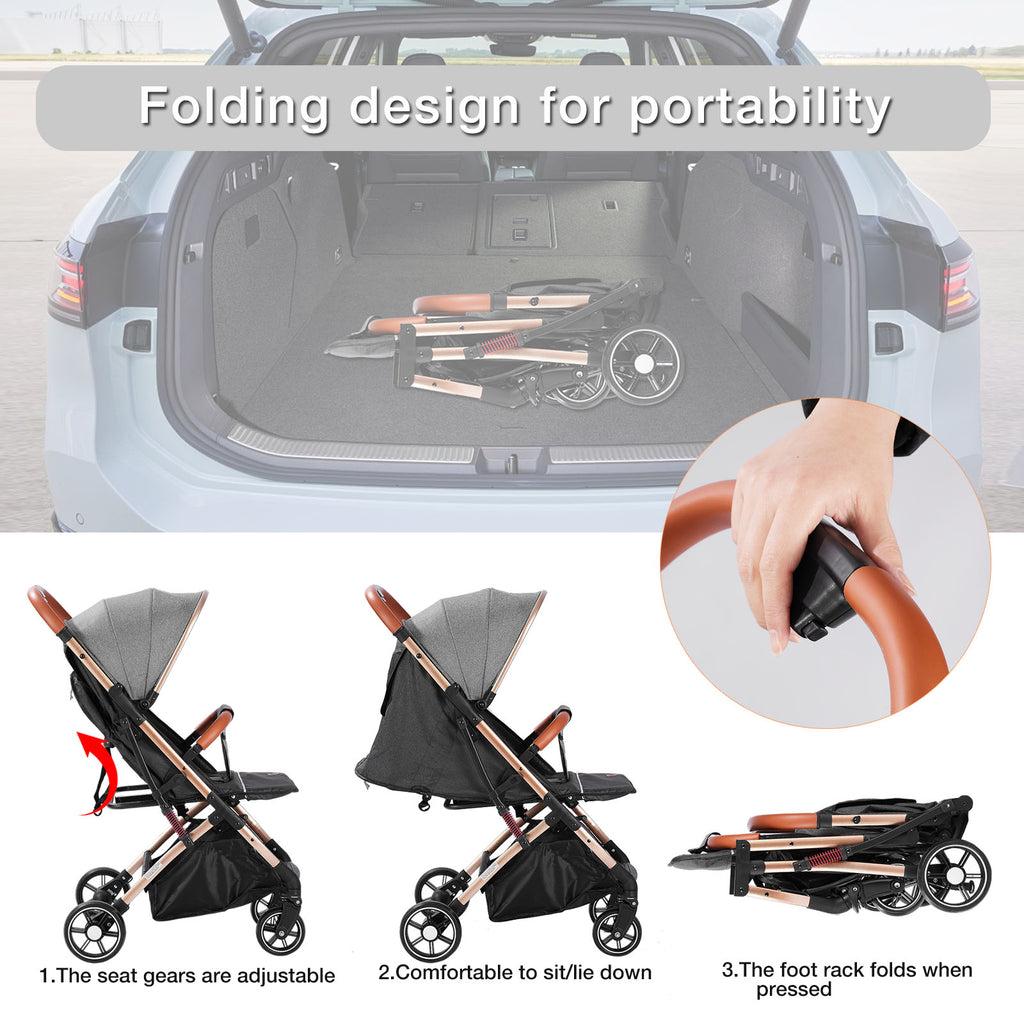 5. Compact Fold for Easy Travel – Store & Go! Fold the stroller in seconds to fit car trunks, overhead bins, or small spaces. Lightweight design (just [X] lbs) makes it easy to carry—no bulky hassle during airport transfers or hotel stays, streamlining travel with ease.