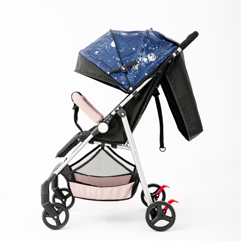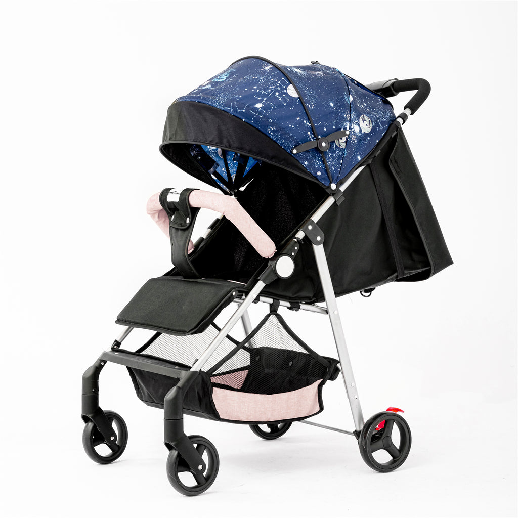 Starry Sky Print Baby Stroller – Compact Foldable, Color - Block Design, Reclining Infant Pram for Travel & Daily Fun