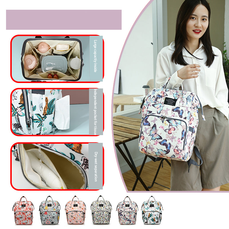 Whimsical - Printed Diaper Backpacks – 6 Unique Nature - Inspired Patterns, Large - Capacity Maternity Bags for Stylish Moms